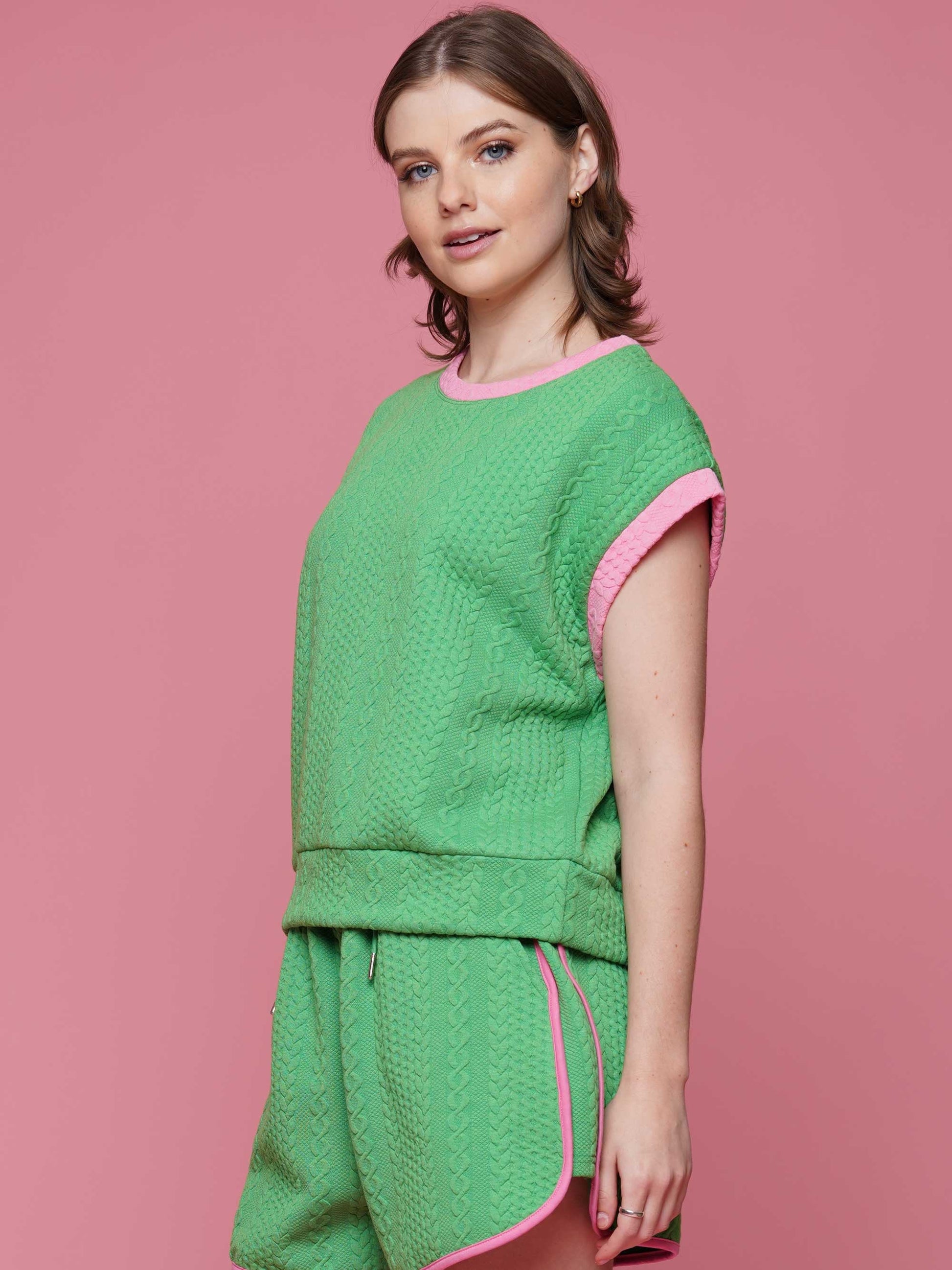 Expertly crafted for comfort and style, the Grey and White Contrast Lyocel Short Set is perfect for lounging or running errands. The capped sleeves and stretchy waistband offer a great fit, while the side and back pockets provide convenience. Made with a blend of polyester, rayon, and spandex for superior softness and flexibility.