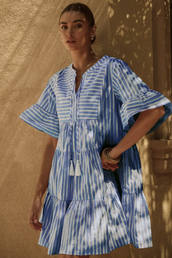 Striped poplin tired baby doll mini dress.