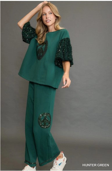 Crafted from premium French terry, this two-piece set combines comfort with understated elegance. The peace sequin detailing adds a subtle, sophisticated touch that catches the light beautifully. The 85% cotton and 15% polyester blend ensures breathability and durability, making it ideal for everyday wear or relaxed occasions. Soft, versatile, and thoughtfully designed for those who appreciate quality basics with character.